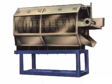 物料由升运机喂入,随滚筒的旋转而翻滚,高压水全程冲洗。由于滚筒内置螺旋,物料一边被冲洗一边向出料方向移动,进入下道工序,污物随冲洗水由滚筒网孔中排出